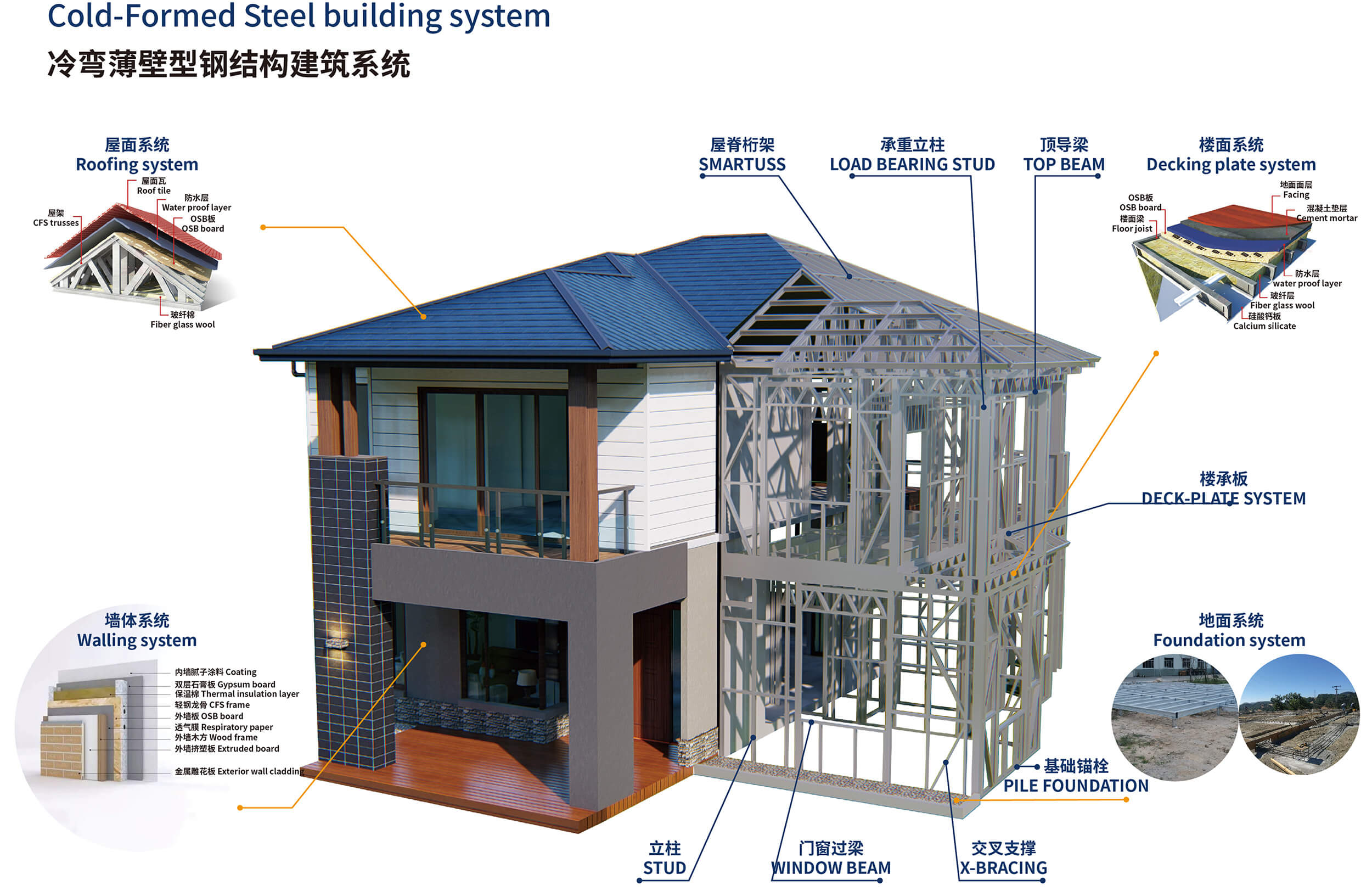 • 冷彎薄壁型輕鋼龍骨住宅具有一些獨(dú)特的綜合優(yōu)勢(shì): (1)輕鋼別墅輕質(zhì)高強(qiáng),抗震性能好,安全性高。建筑自重輕,僅相當(dāng)于混凝土結(jié)構(gòu)的一半左右。 (2)輕鋼龍骨體系構(gòu)配件制作工廠(chǎng)化和機(jī)械化、商品化程度高,易于實(shí)現(xiàn)產(chǎn)業(yè)化、工業(yè)化,可以縮短施工周期。